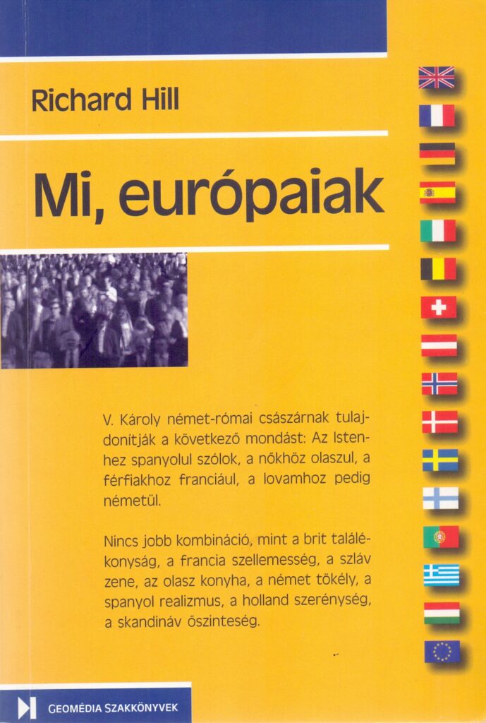 Ne gondoljuk, hogy az efféle „nacionálgeneralizmus” a jelenkor terméke! Állítólag V. Károly német-római császár mondta, hogy „az Istenhez spanyolul szólok, a nőkhöz olaszul, a férfiakhoz franciául, a lovamhoz pedig németül”. Legalábbis ez a neki tulajdonított idézet olvasható Richard Hill Mi, európaiak című, végtelenül szellemes, ugyanakkor rendkívül informatív könyvének címlapján (a másik két aforizmát is a kötetből idéztük). A mű magyarul negyedszázada jelent meg (fordította Polyák Ildikó; Geomédia Szakkönyvek, Budapest, 1999, változatlan utánnyomás: 2001). Az évforduló alkalmat kínál arra, hogy újra ráirányítsuk a figyelmet, egyúttal emlékeztessünk arra, hogy Európa népei hosszú távon akkor is egymásra vannak utalva, ha napjainkban a kontinens éppen véres konfliktusokkal terhes.